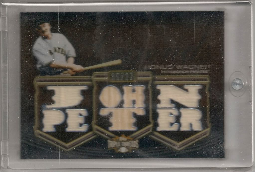 While I will never own “THE” Honus Wagner card, I will settle for this card below. I was lucky enough to pull this out of Topps Triple Threads. I wish I could remember the year as I am doing this post on my break at work and do not have the card in hand. However thanks to Photo bucket, I can at least access my scans.