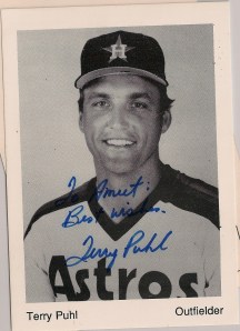 Not as well known as some other players, but Terry Puhl was a pioneer in his own right. My Dad told me about him and I decided right away to get his autograph. I stumbled upon it a few weeks back at my parents place.
